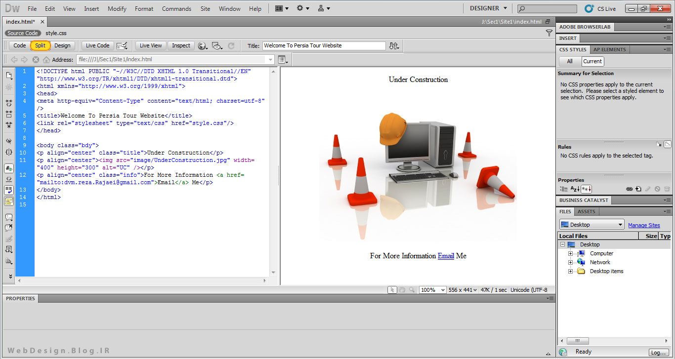 تا اینجا برای شروع کافیست مابقی تنظیمات را با ادامه مقالات سایت فرا می گیرید. هرچند دیگر بخش های این نرم افزار برای افرادی که تجربه کار با نرم افزارهای طراحی صفحات تحت وب مانند فرانت پیج Front page را دارند آنچنان غریب نیست. اگر شما از مبتدیان هستید، اصلا نگران این موضوع نباشید به زودی شما هم به جمع کهنه کاران خواهید پیوست البته زمان این اتفاق به پشتکار و تلاش شما بستگی دارد.
